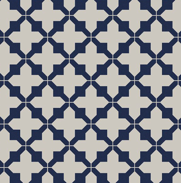 Introducing QUIVER, one of two designs launching with Harvey Maria as part of their new Small Batch collection of made to order luxury sheet vinyl flooring. Decorative roof gables and 17th century Venetian church floor tiles have been sources of inspiration. Practical and hard wearing, the sheet vinyl flooring comes in two colours Navy (pictured) and Black. Available now from Harvey Maria.