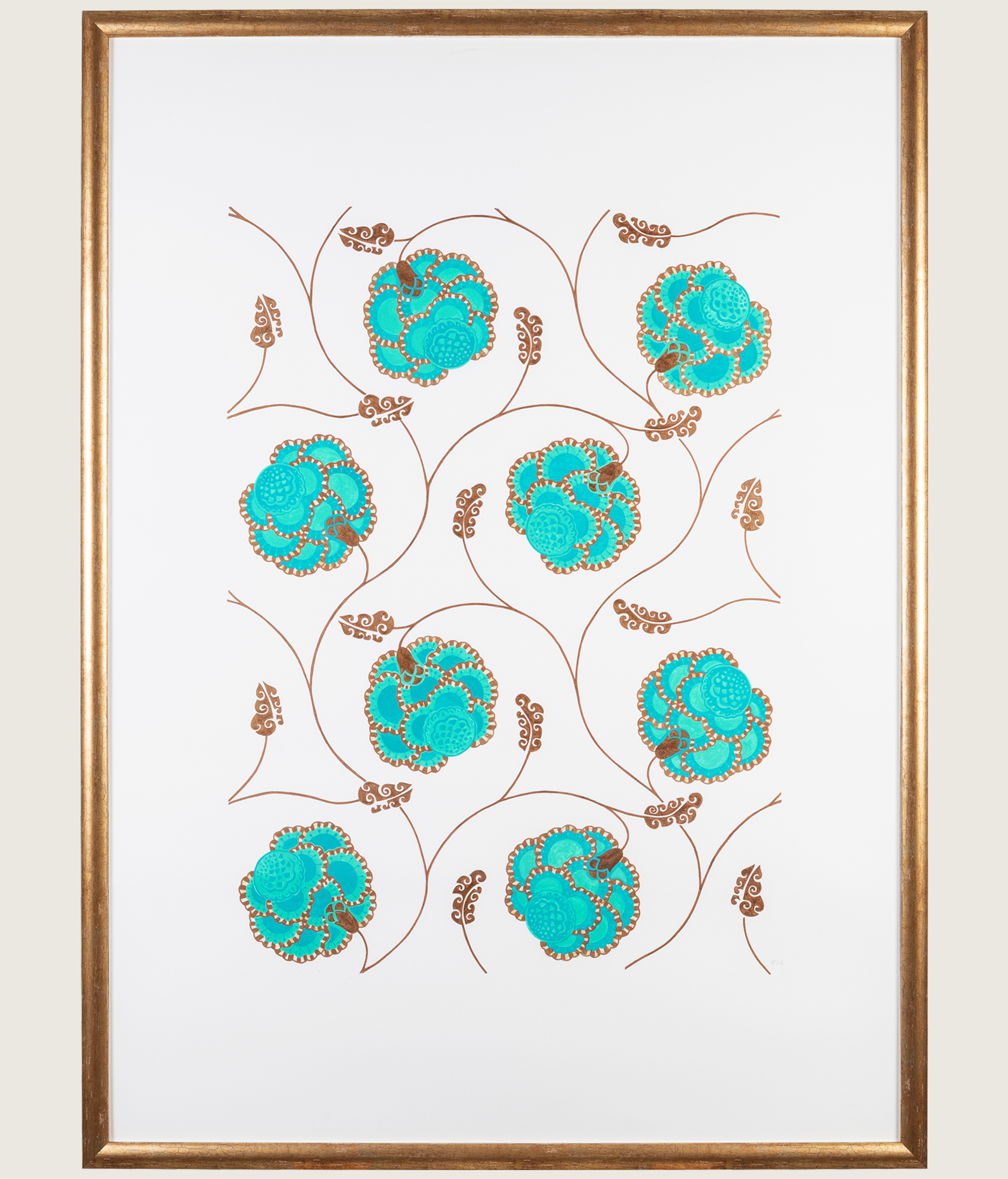 Gouache, metallic ink, iridescent acrylic ink, metallic felt pen and Caran d'Ache on 300gsm Bockingford watercolour paper, signed and dated. Edition of 3.