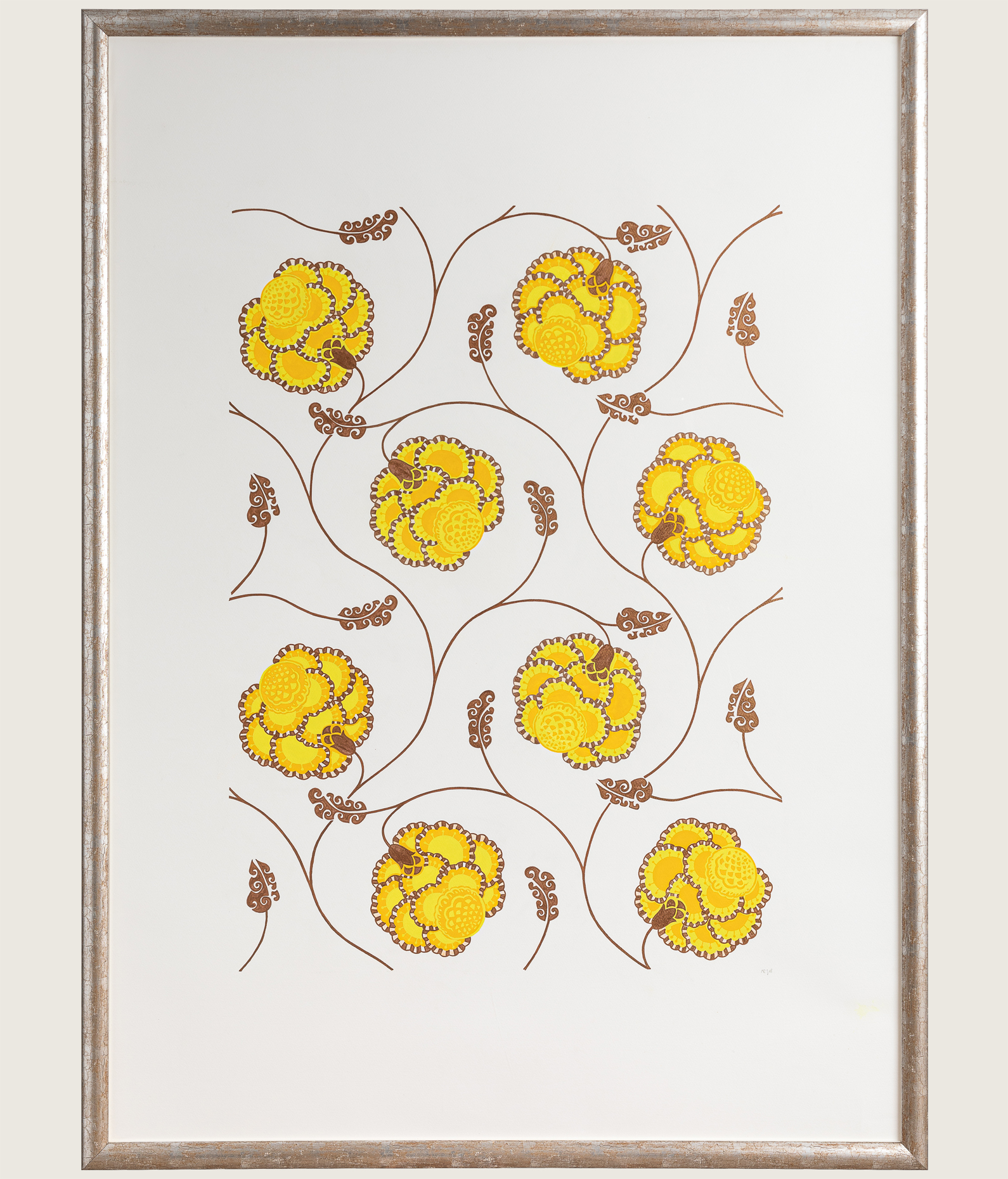 Sunny yellow flowers dance across the paper like full blooded Andalusian flamenco dancers.