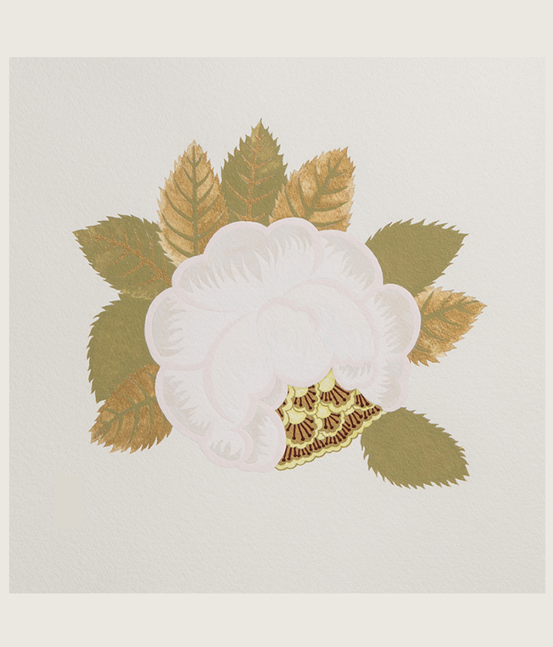 Inspired by French 17th Century Indienne flower designs, Roman villa frescoes, and the elegance in the drawings of Maria Garthwaite and James Leman, Clipped from Neisha's 'Rose' wallpaper design, featuring burgeoning fantasy roses and peonies.