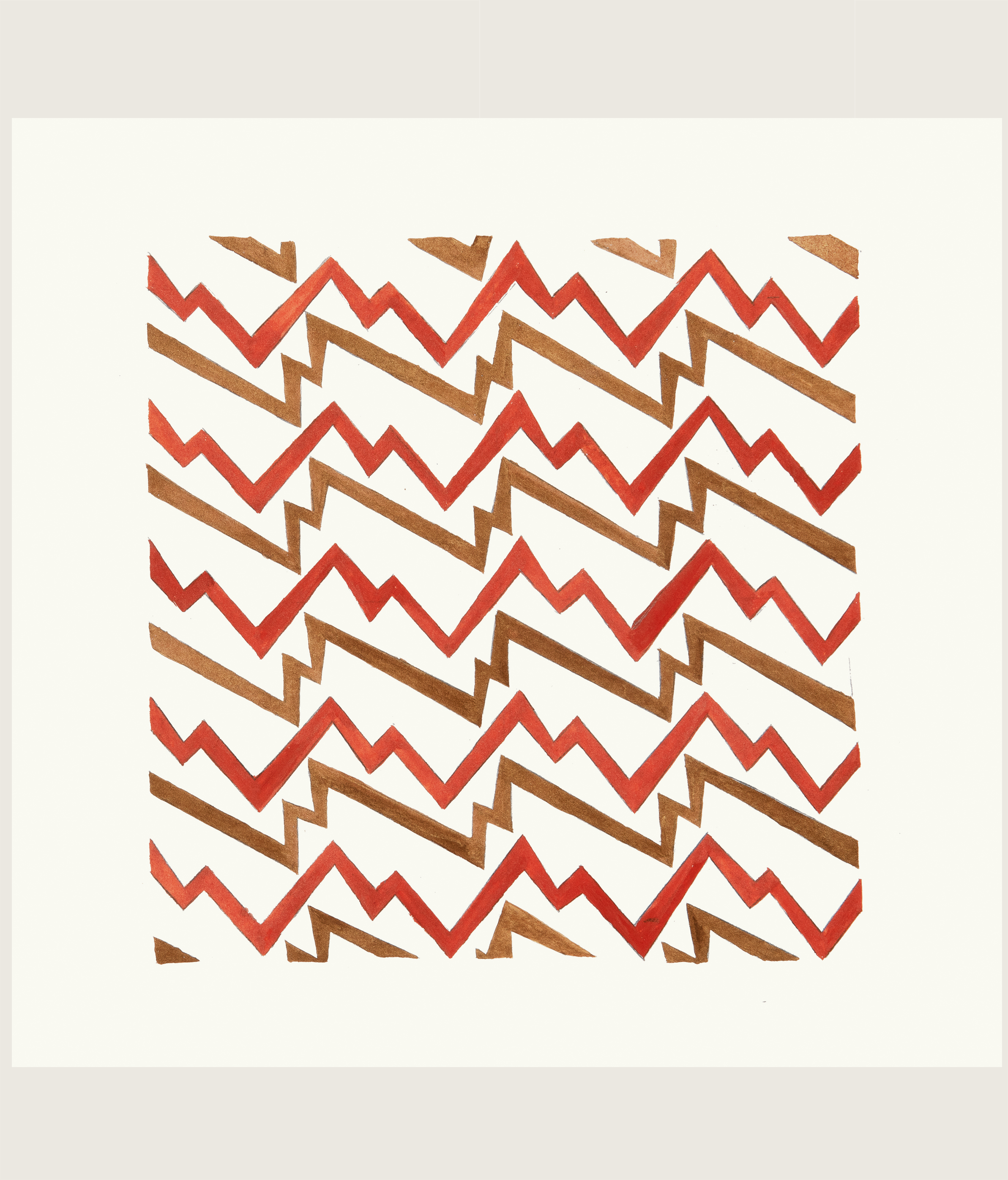 Alternate coloured lines gallop across the paper like thunder and lightning.