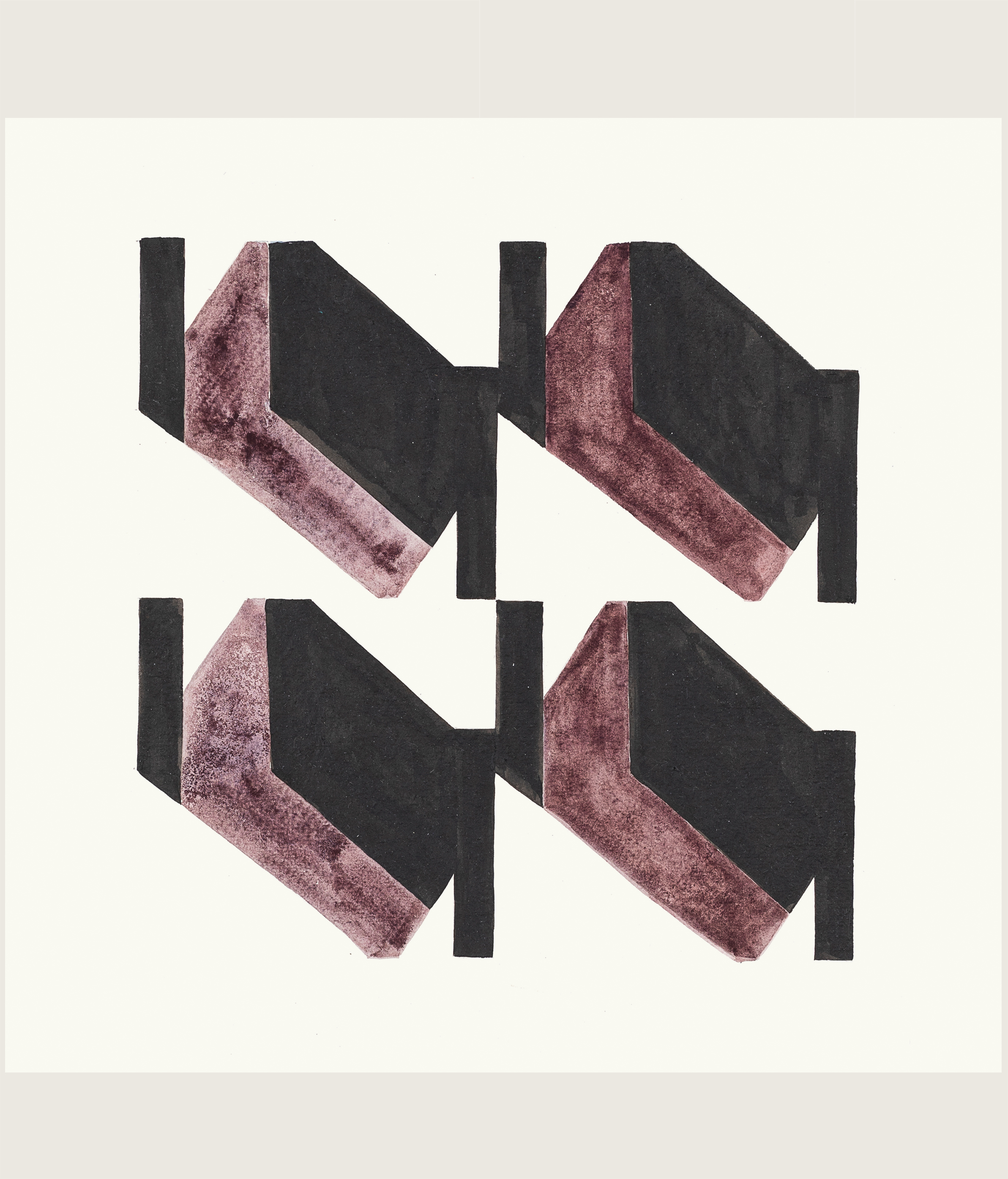 A set of lino cut prints that Neisha did as an art school project were the starting point for this collection of designs. The results have a feeling of Vienna Secession, Josef Hoffman, De Stijl and Bauhaus.